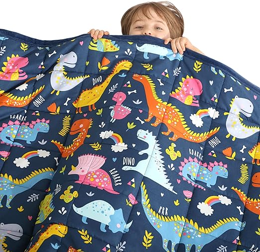 - 🦖CLEANING AND SELECTION🦖: Machine washable, low temperature drying or air drying is recommended. If you are using the weighted blanket for the first time, the weight of the blanket should not exceed 10% of the child’s weight. You can try to choose a lighter weight for the first time. Please note that it takes 2-7 days to adapt to the weight of the blanket. If you have any questions, please feel free to contact us.